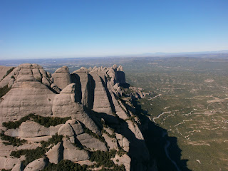 desde el control hasta el puesto del chocolate me dijeron que había 1’6 km. Una subida por pista en la que había tramos bastante inclinados, pensaba que había llegado ya al control cuando llegue a una casa pero aun había que continuar subiendo (suerte que pare para admirar el paisaje) cuando acabe la subida llegue al control del chocolate. En el control estaba Cris, con la mujer del Presi (Marta), la mujer de Juanito (Mari), Pedro y Beth. Como el chocolate no estaba muy espeso me separe un poco del camino para ver la ermita de Sant Pere de Serrallonga. Me cogí un vaso de chocolate y 2 trozos de coca y cuando me disponía a seguir Pedro me dijo que me esperara, me dio una bolsa con chocolate y coca y me dijo que en el siguiente control estaban Fermi Marco y María, y le habían dicho que el primero de confianza que pasara les llevara el chocolate. Curiosamente era el primero que pasaba por allí y también el primero de confianza.
